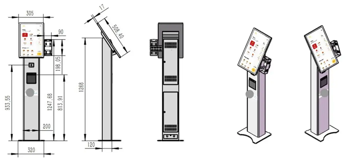 Product Design Dimension Drawings for LCD Kiosk Display: